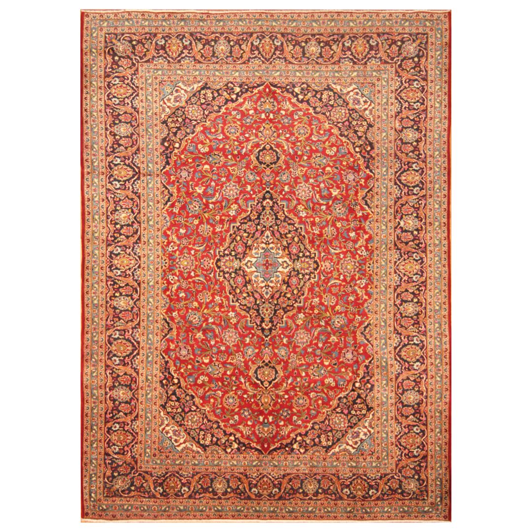 Kashan is a historic city in the province of Isfahan. This region is famous for their rug weaving, which goes back to the Safavieh dynasty workshop rugs that were created in Kashan county. Most of the older rugs that were woven in Kashan used imported wool. This particular rug was made by village weavers in Kashan using high quality wool from locally raised sheep. The process of making a rug includes cleaning, washing and dyeing and then weaving the wool which is sourced from local villages.