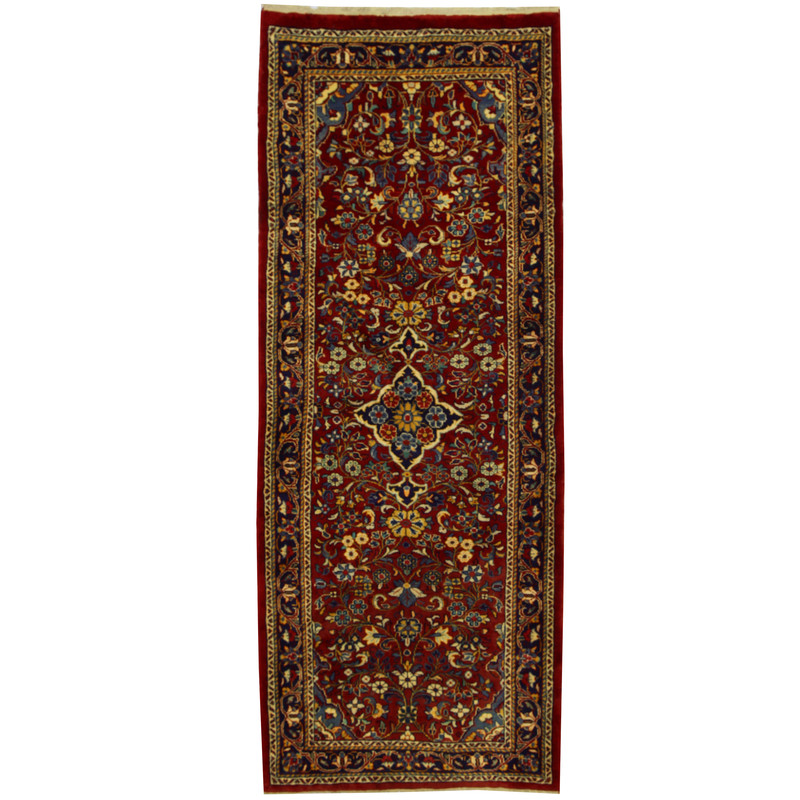 This particular rug was made by the village weavers in Mahal, who were known to use the asymmetrical or Persian knot, giving their rugs exceptional softness and flexibility. Natural vegetable dyes are used to give the rugs their rich colors. Due to the handmade nature of our rugs, the size may vary from as advertised by 3-4 inches. Regular vacuuming and annual professional cleaning will keep your rug looking new for years to come.
