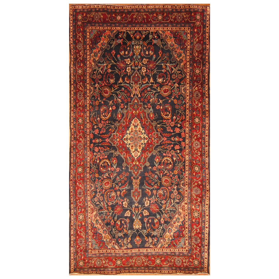 Sarouk rugs hail from the Arak region of Iran and are made with traditional allover designs or symmetrical floral patterns. The traditional design is still sought after today. This particular rug was made by village weavers following traditional methods of weaving. The process of making a rug includes cleaning, washing and dyeing the wool which is sourced from local villages.
