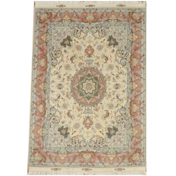 Tabriz rugs are among the most beautiful and legendary carpets ever built. Many rugs produced in the city of Tabriz are attempting to follow the incredible artistry of the Persian Safavid rugs. Tabriz managed to keep these ancient traditions alive in the city and the villages surrounding it in the East Azerbaijan province of Iran. This particular rug was made by village weavers following traditional methods of weaving. The process of making a rug includes cleaning, washing and dyeing the wool which is sourced from local sheep.