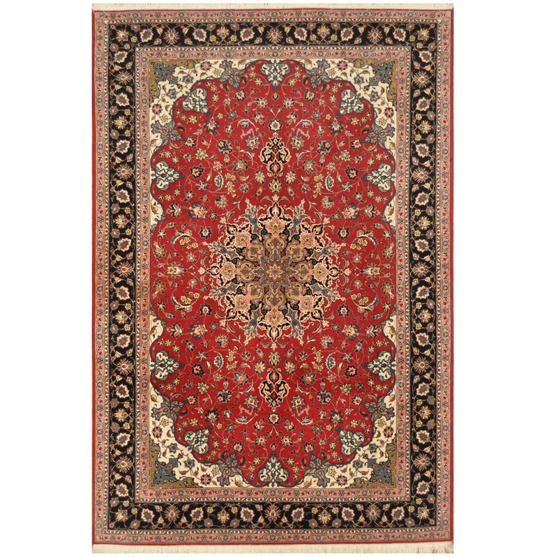 Tabriz rugs are among the most beautiful and legendary carpets ever built. Many rugs produced in the city of Tabriz are attempting to follow the incredible artistry of the Persian Safavid rugs. Tabriz managed to keep these ancient traditions alive in the city and the villages surrounding it in the East Azerbaijan province of Iran. This particular rug was made by village weavers following traditional methods of weaving. The process of making a rug includes cleaning, washing and dyeing the wool which is sourced from local sheep.