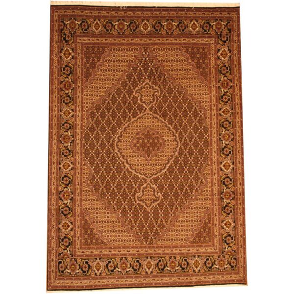 Tabriz rugs are among the most beautiful and legendary carpets ever built. Many rugs produced in Tabriz are attempting to follow the incredible artistry of the Persian Safavid rugs. Tabriz managed to keep these ancient traditions alive, in spite of all the conquering and political restructuring. This particular rug was made by village weavers in Tabriz. The process of rug making includes cleaning, washing and dyeing the wool, and then weaving the rug with vegetable-dyed wool.