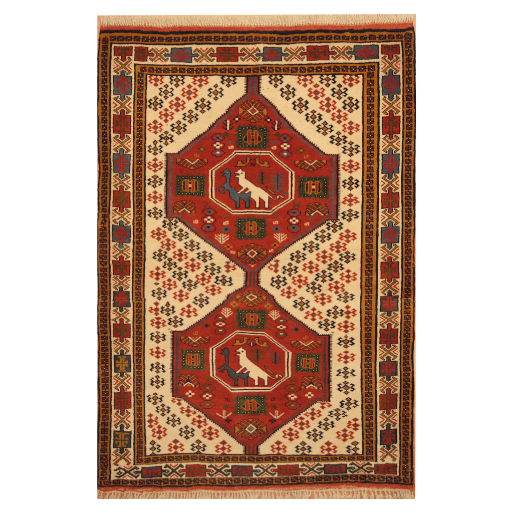 The presence of Kurdish weavers in the northwestern area of Persia and the Iranian Kurdistan region has led to an overlap of weaving styles. Although these antique Kurdish village carpets feature motifs that are reminiscent of Caucasian designs, Kurdish weavers were a very small minority in the areas north of Persia. This particular rug was made by the Iranian Kurdish village weavers in the Northwestern part of Iran. The process of making a rug includes cleaning, washing and dyeing the wool which is sourced from local sheep.