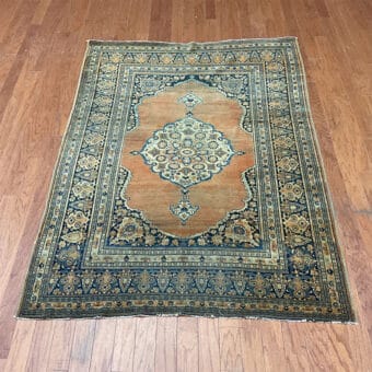 1860s Antique Handmade Persian Tabriz Hadji Jalili Wool Rug (4’3″ x 6′)