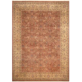 Indo Hand-knotted Vegetable Dye Tabriz Wool & Silk Rug (10′ x 14′)