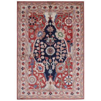 Afghan Hand-Knotted Khorjeen Kazak Wool Rug (4’1 x 6’1)