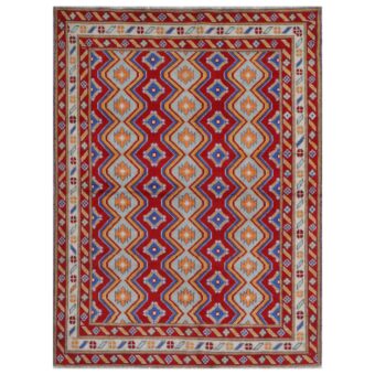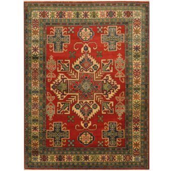 Afghan Hand-knotted Super Kazak Wool Rug (5′ x 6’9)